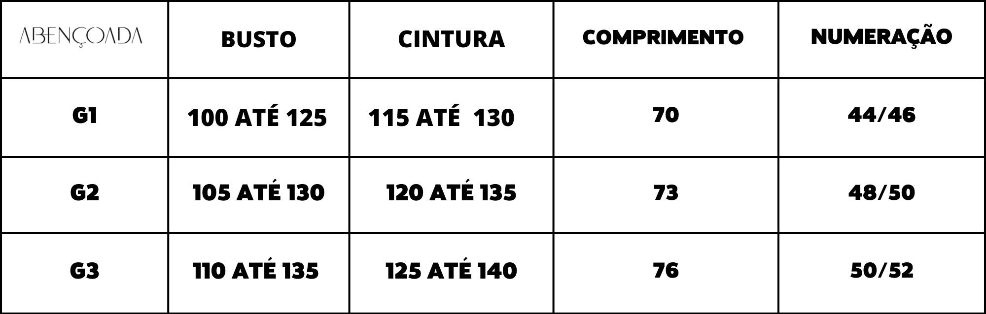 📏 Confira abaixo a imagem da tabela de medidas referente ao modelo: