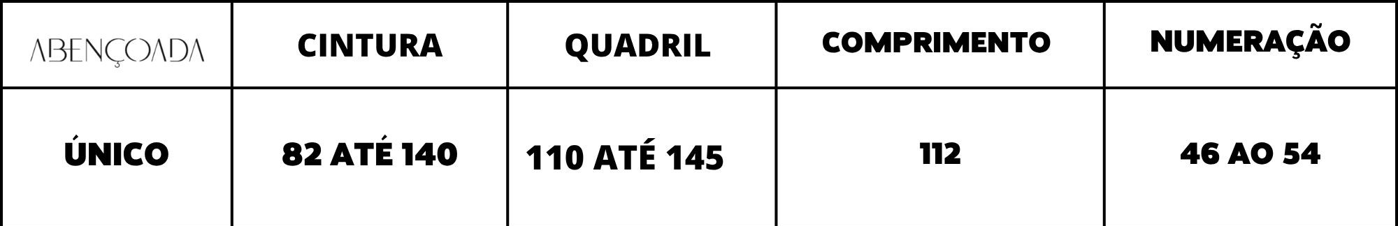 Tabela de Medidas: