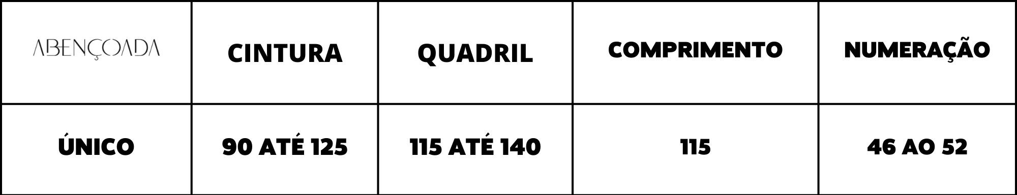 Tabela de Medidas:
