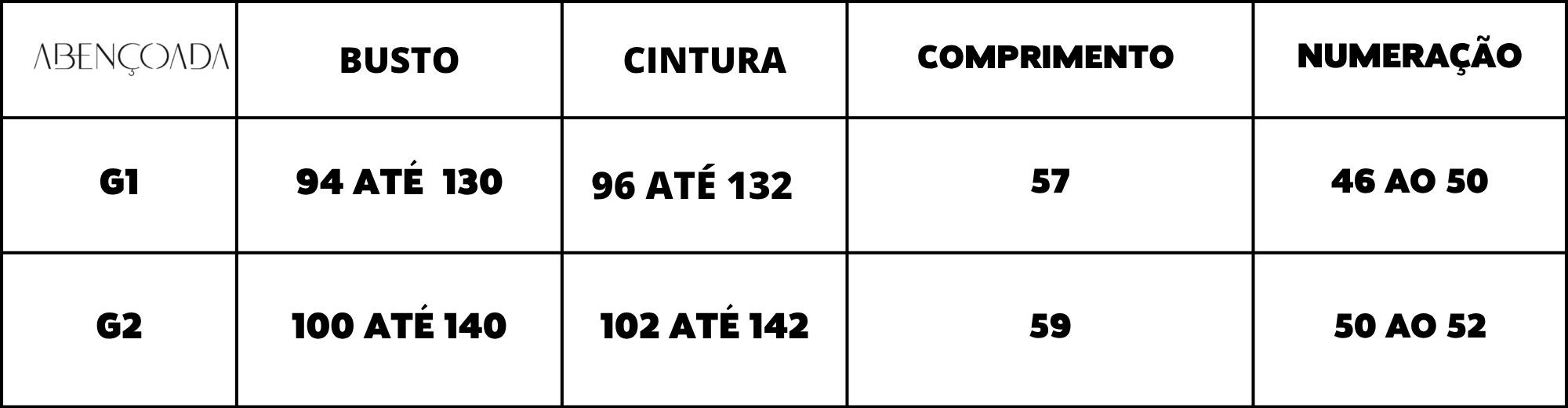 📏 Confira abaixo as tabelas de medidas do conjunto: