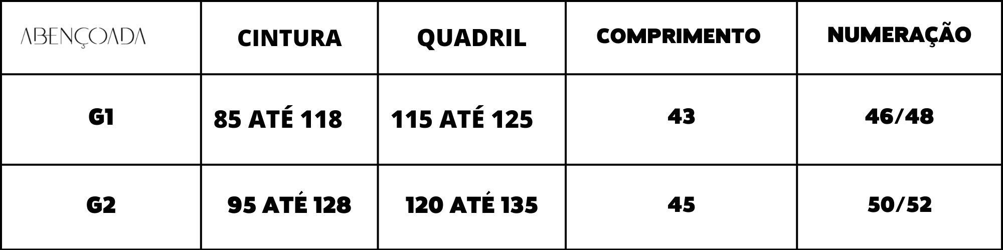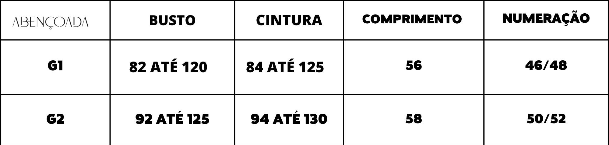 Tabela de Medidas: