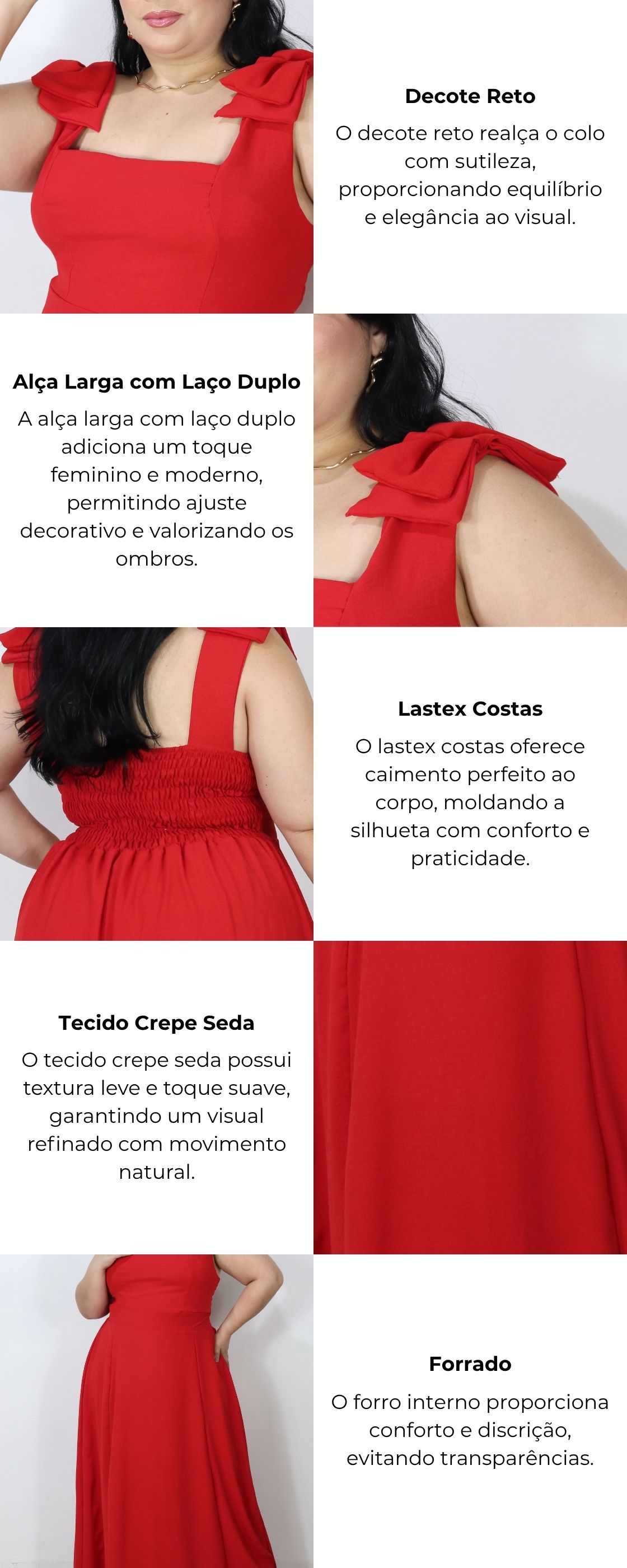 Com acabamento diferenciado e caimento impecável, o Vestido Feminino Longo Decote Reto Alça Larga Com Laços é a peça-chave para quem busca romantismo e elegância em uma única produção.