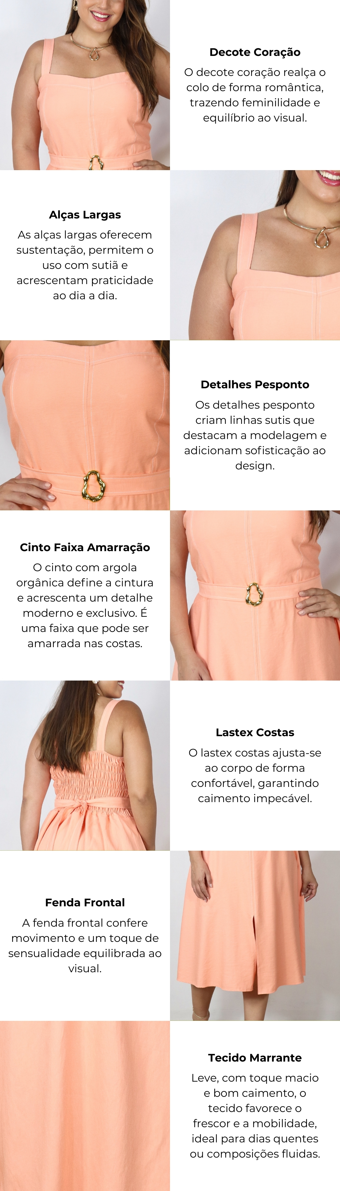 O Vestido Feminino Midi Detalhes Pesponto Com Cinto Argola Orgânica une delicadeza e sofisticação em uma modelagem que valoriza a silhueta com equilíbrio. Os acabamentos bem trabalhados e o cinto diferenciado tornam a peça única e elegante.